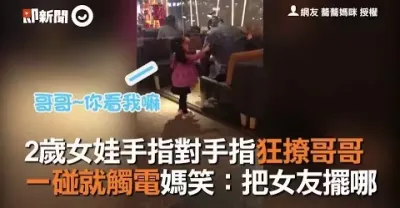 2歲女娃手指對手指狂撩哥哥,一碰就觸電媽笑:把女友擺哪