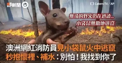 澳洲網紅消防員見小袋鼠火中逃竄 秒抱懷裡、補水
