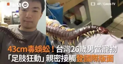 台灣26歲男狂寵43cm有毒秘魯巨人蜈蚣!足肢狂動親密接觸當寵物