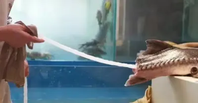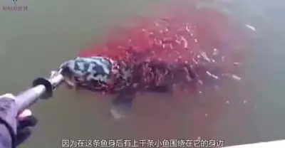 母蛇頭魚被釣起,上千條小魚寶寶合力救母,男子受感動將其放生