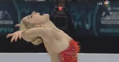 敬業完成比賽,滑冰姐姐比賽第五秒鈕扣噴飛瞬間