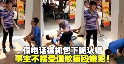 「發生在新加坡」偷電話被抓包下跪認錯!事主不接受道歉痛毆嫌犯!!