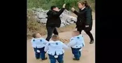 3胞胎髮現爸爸媽媽打架後,老二一個眼神就夠了,秒懂
