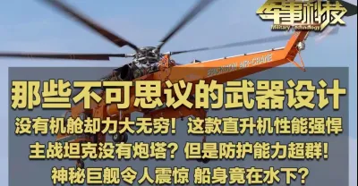 這些武器讓人震驚!奇葩直升機沒有機艙 卻力大無窮 能輕鬆吊起房子!沒有炮塔的主戰坦克展現超強防護能力!神秘巨艦把船身藏在水下 號稱海上移動基地!