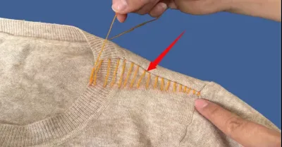 領口太大不用剪,只需縫兩針一拉立馬變小,漂亮又無痕,方法簡單易學,The collar is too big and doesn't need to be cut,