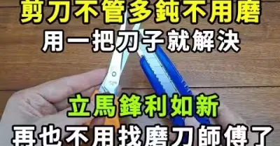 剪刀鈍了不用磨,不管多飩,用一把刀子就解決,立馬鋒利如新,再也不用找磨刀師傅了。