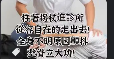 拄著拐杖進診所,從容自在的走出去!全身不明原因顫抖,整脊立大功!