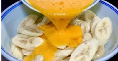 往香蕉裡面打入兩個雞蛋沒想到這麼好吃,我家孩子三天兩頭點名吃