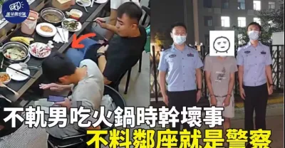 不軌男吃火鍋時做壞事,不料鄰座就是警察,剛想跑就被一把抓住!|巧遇|搞笑|能量觀察號