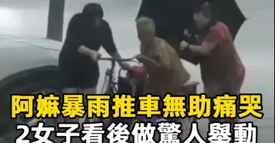 破衣阿嫲暴雨推車無助痛哭,2女子看到後急忙上前幫忙,渾身濕透惹全網爆贊 #暴雨 #感動 #正能量 #暖心一刻