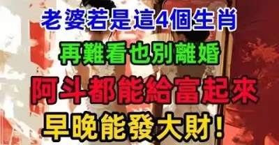 老婆若是這4個生肖,再難看也別離婚,天生旺夫命,阿斗都能給富起來,早晚能發大財!