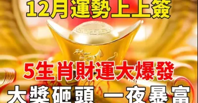 12月運勢上上籤!這5個生肖被頭獎砸中,迎來財運大爆發,致富之路暢通無阻,紫氣東來,財氣盈門,貴人相幫,餘額屢創新高!【般若之音】#生肖 #運勢 #風水 #財運