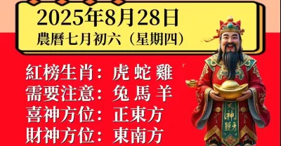 明日小運播報2025 年8月28日(星期四)農曆七月初六