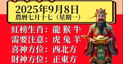 明日小運播報~2025 年 9 月 8 日(星期一)農曆七月十七