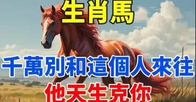 生肖馬!一定要警惕這個人!他是你一生的剋星!天生克你!遇見了千萬要躲開!否則會影響自己的運勢!屬馬人早知道早受益!