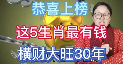 恭喜上榜!這5大生肖最有錢!橫財大旺30年!再也不過窮日子!家有這4生肖!家中有喜事!家人有福氣!