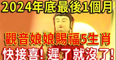 快接喜!2024年底最後1個月!觀音娘娘親自賜福5生肖,正財橫財一發再發,大獎小獎中個不停!