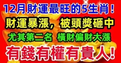 12月財運最旺的5生肖!財運暴漲,被頭獎砸中,尤其第二名,橫財偏財大漲,有錢有權有貴人!