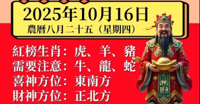 明日小運播報~2025 年 10 月 16 日(星期四)農曆八月二十五