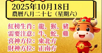 明日小運播報~2025 年 10 月 18 日(星期六)農曆八月二十七