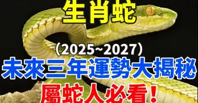 生肖蛇未來三年(2025、2026、2027)運勢大揭秘!你會遇到什麼機遇和挑戰?如何提升你的事業、財富、感情和健康?屬蛇人再忙也花兩分鐘看看!