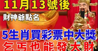 錯過再等10年!財神爺點名這5大生肖,11月13號後買彩票中大獎,乞丐也能發大財,尤其這個屬相!再窮也能翻身!【般若之音】#生肖 #運勢 #風水 #財運