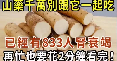 山藥千萬別跟它一起吃,已經有833人腎衰竭,再忙也要花2分鐘看完!
