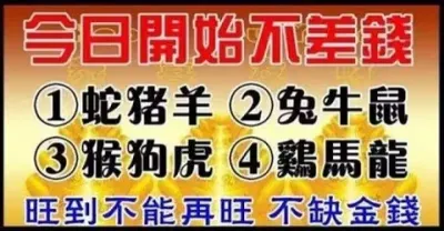 生肖: 今天開始不差錢,旺到不能再旺,不缺金錢,好運不斷