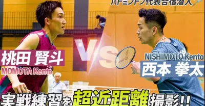 【バドミントン代表合宿】桃田賢斗vs西本拳太の実戦練習を至近距離で撮影してみた!|MOMOTA Kento vs NISHIMOTO Kenta Badminton