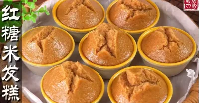 家裡有米就能做的紅糖米發糕,米香濃郁,鬆軟香甜,個個開花!Brown sugar rice Steamed Chinese sponge cake。