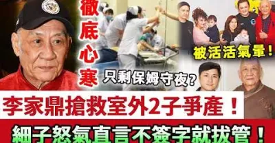 被活活氣暈!李家鼎搶救室外2子為爭產大打出手,細子竟直言「不簽字就拔管」?護工曝每晚只剩保姆守夜,為養家死撐多年徹底心寒! #李家鼎 #施明