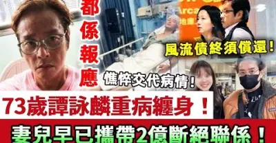 風流債終須償還!73歲譚詠麟重病纏身,取消一切工作交代病情!妻兒早已斷絕聯繫,攜2億定居異國唔願返港照顧!當年逼迫大婆出家全系報應! #譚詠麟