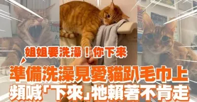 準備洗澡見愛貓趴毛巾上 頻喊「下來」它賴著不肯走