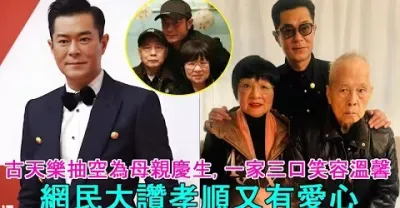 古天樂抽空為母親慶生, 一家三口笑容溫馨, 網民大讚孝順又有愛心