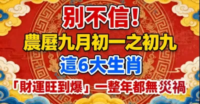 別不信!農曆九月初一之初九,這6大生肖「 財運旺到爆 」一整年都無災禍!