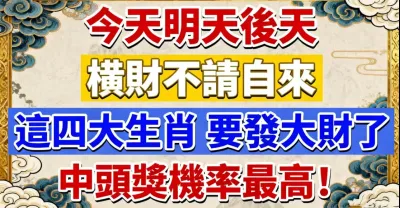 今天明天後天,連續3天!橫財不請自來,這四大生肖 要發大財了,中頭獎機率最高!