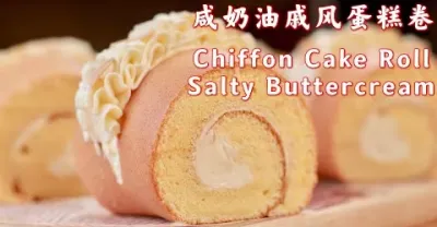 戚風蛋糕卷【cc】咸奶油霜的做法和食譜Chiffon Cake Roll,Salty Buttercream recipe #老奶油蛋糕#Baking#瑞士卷#SwissRoll【阿栗食譜60】