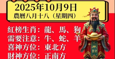 小運播報2025 年 10 月 9 日(星期四)農曆八月十八