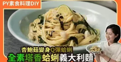 全素塔香蛤蜊義大利面|杏鮑菇變身Q彈蛤蜊!香氣炸裂超開胃|vegan|PY素食料理