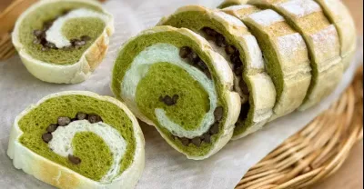 Matcha Wool Roll Bread with Sweetened Red Bean Filling 抹茶毛線球麵包卷紅豆餡,直接法依然鬆軟牽絲!