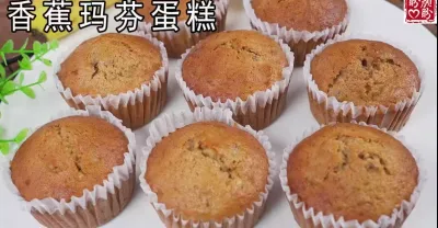 鬆軟香甜的香蕉核桃棗泥瑪芬蛋糕,低油低糖,簡單又美味!Banana Muffin Cake。