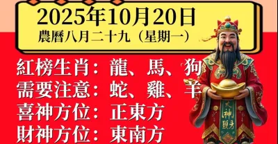 明日小運播報~2025 年 10 月 20 日(星期一)農曆八月二十九