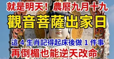 就是明天!農曆九月十九觀音菩薩出家日,這 4 生肖記得起床後做 1 件事,再倒楣也能逆天改命!