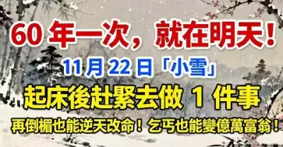 60 年一次,就在明天!11 月 22 日「小雪」,起床後趕緊去做 1 件事,再倒楣也能逆天改命!乞丐也能變億萬富翁!
