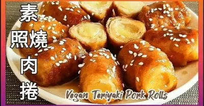 【1分鐘學素菜】純素照燒肉卷 開胃下飯 比肉還好吃 Vegan Teriyaki Pork Rolls