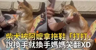 柴犬被阿嬤拿拖鞋「打打」說換手就換手媽媽笑翻XD