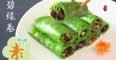 『Eng Sub』【碧綠卷】軟糯順滑 鮮甜素餡 吃一口忘不了Buddah green veggie rolls【田園時光美食 2019 020】
