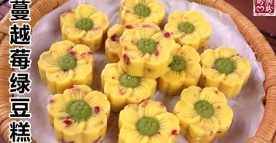 一口就淪陷的蔓越莓綠豆糕,非常的簡單易學,口感細膩綿軟,吃多了也不會覺得甜膩!Cranberry bean paste cake。