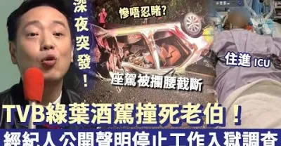深夜突發!tvb 綠葉酒駕撞死老伯!座駕被攔腰截斷,現場畫面慘唔忍睹,經紀人公開聲明,停止工作入獄調查!