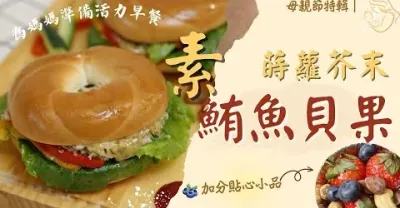 母親節特輯|蒔蘿芥末素鮪魚貝果+堅果莓果盅|觀音山蔬食館,為媽媽準備活力早餐|龍德上師慈善事業